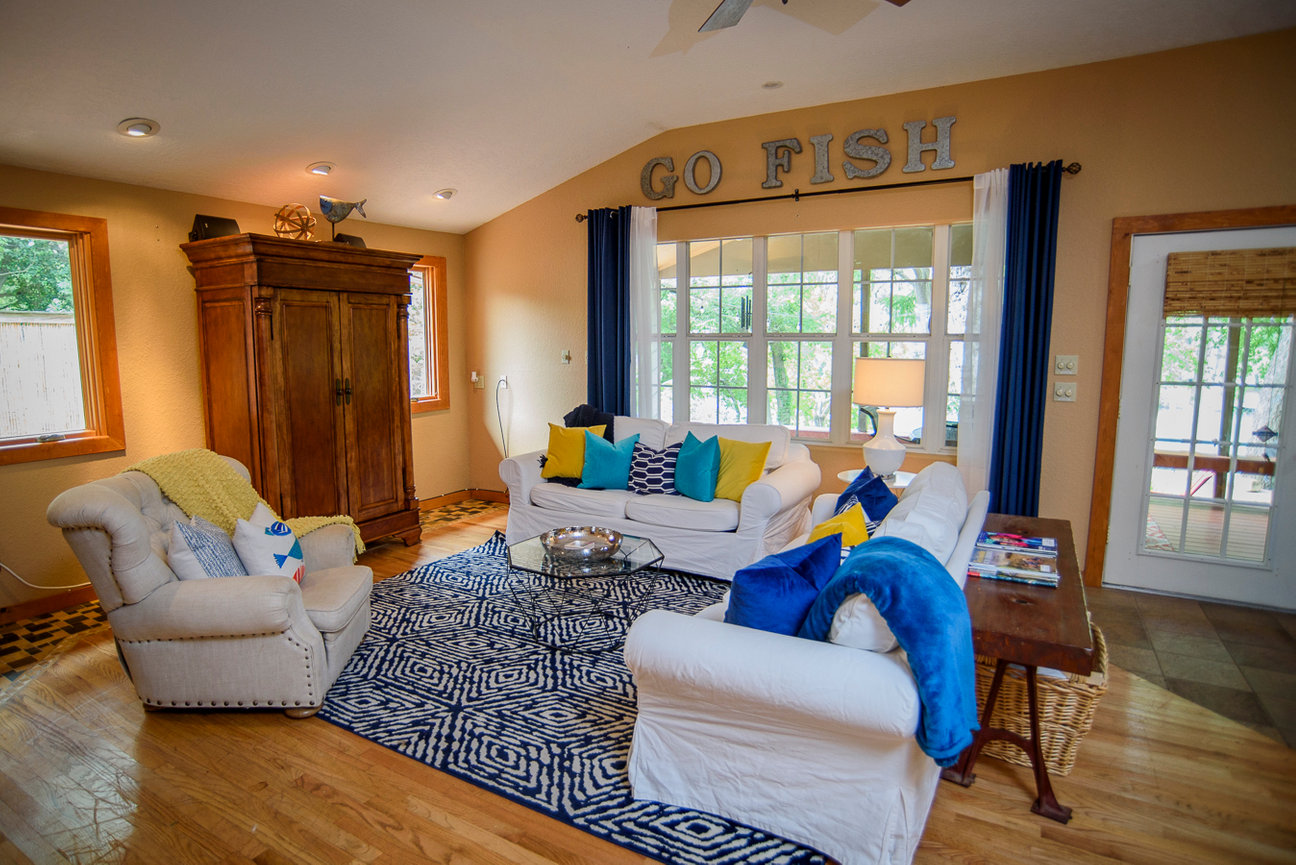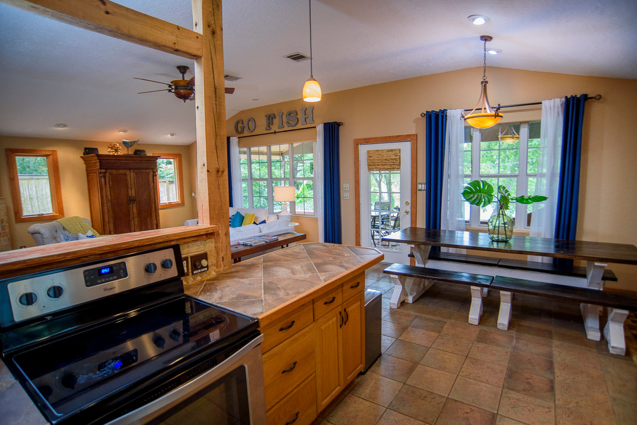 Located on Meadow Lake in Seguin, TX just 25 minutes from New Braunfels. A great home for entertaining two families, Meadow Lake offers fishing, tubbing, water skiing, canoeing, paddle boarding & jet skiing. Fisherman Welcome!!! Fishing boat access at Meadow Lake Resort. Meadow Lake is a little known fishing gem and several species of fish can be caught here including: Bullhead, Crappie, Catfish, Large Mouth Bass and Bluegill. Two kayaks, life jackets, ping pong table, foosball table and other games are provided on property.