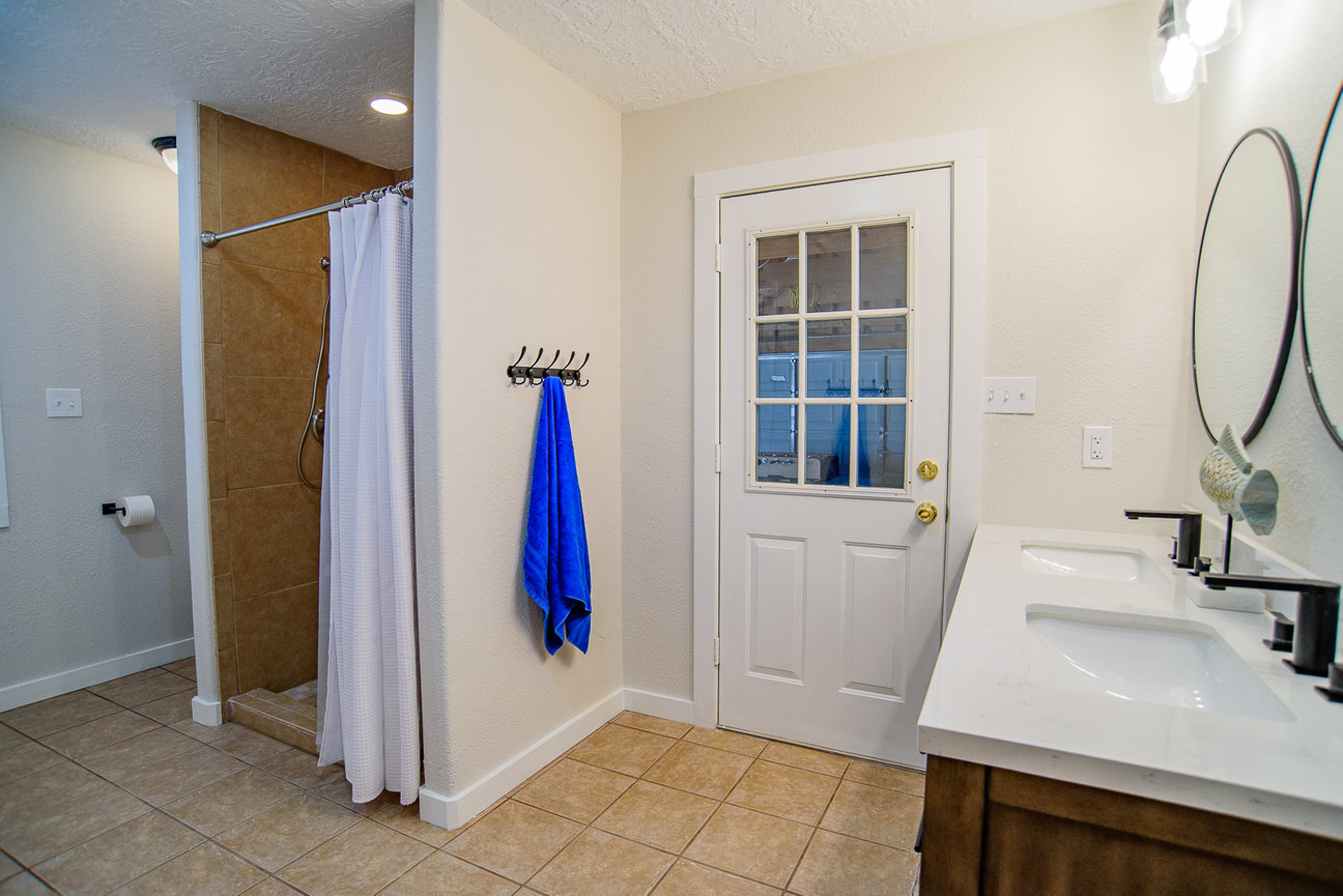Master with Adjoined Bathroom: 1 Queen, 1 Bunk Bed: Twin over Full with Twin Trundle